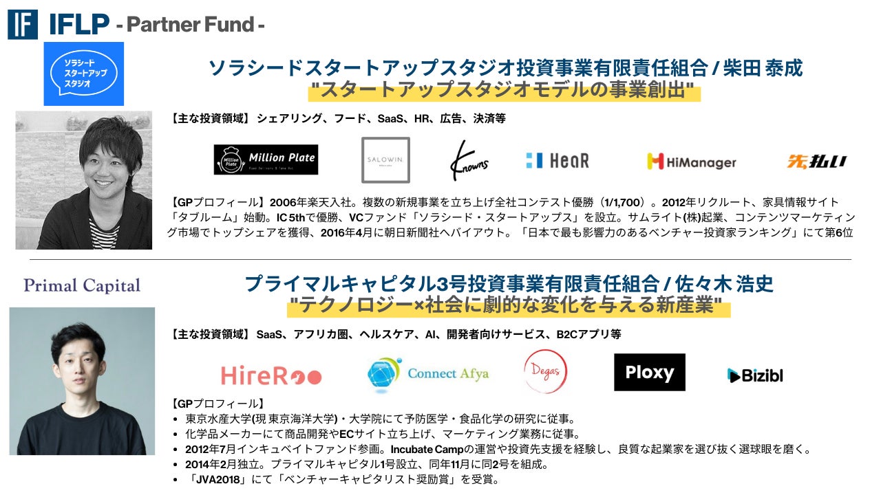 インキュベイトファンドでは、従前から同志となり得るベンチャーキャピタリストとの連携や支援を重視し、LP出資を継続しており、2018年には国内初の特化型ファンド・オブ・ファンズとしてIFLPシリーズを立ち上げました。